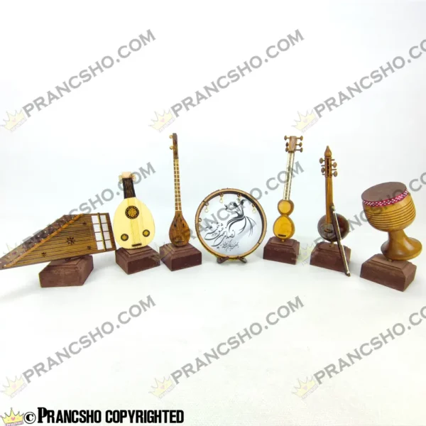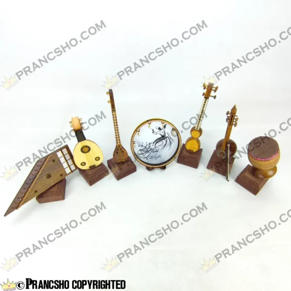 - محصول شامل هفت عدد ساز دکوری چوبی زهی شامل: دَف(داریه)، تنبک، کمانچه، تار، سه تار، قانون و عود می باشد.