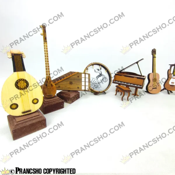 - محصول شامل هفت عدد ساز دکوری چوبی زهی شامل: گیتار، گیتار الکتریک، کمانچه، تار، سه تار، ویالون و عود می باشد.