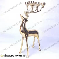 شمعدان شش شعله طرح گوزن ایستاده طلایی براق