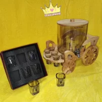 کلمن شیشه ای پایه چوبی طرح دلین بزرگ شیشه شامپاینی
