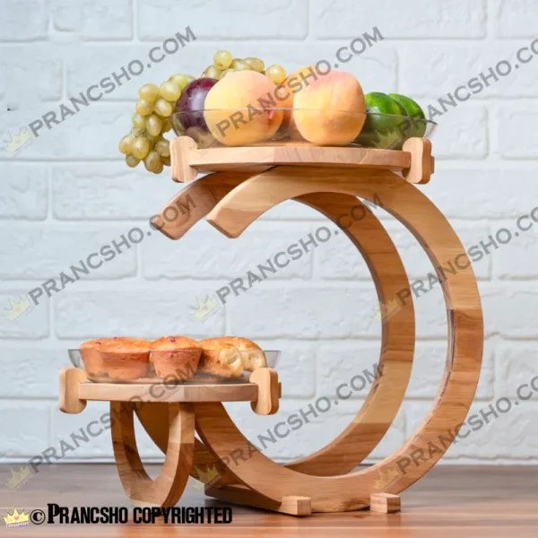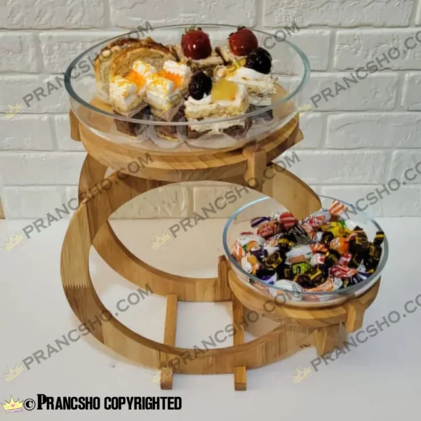استند شیرینی خوری چوبی دو طبقه راسا شیشه ساده
