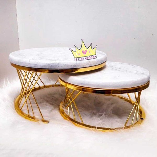 استند پذیرایی دو طبقه سنگی پایه گوشواره‌ای نقره‌ای سنگ سفید ازنا
