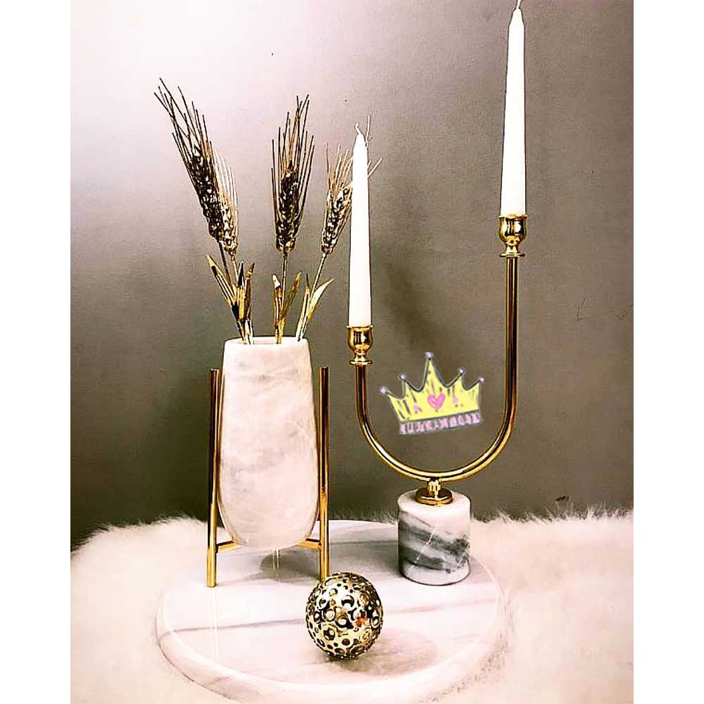 شمعدانی پایه مربعی سنگی طرح لا و یو (U)