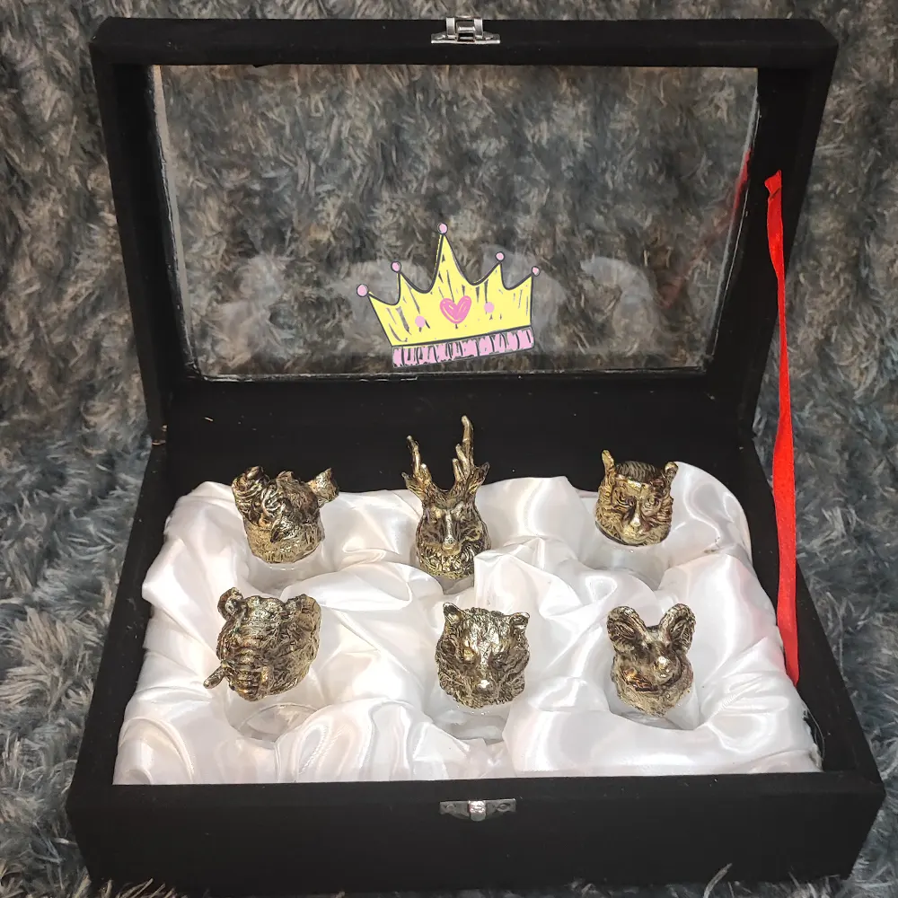 6 عدد شیشه ای با سر فلزی مدل حیوانات در طرح های مختلف