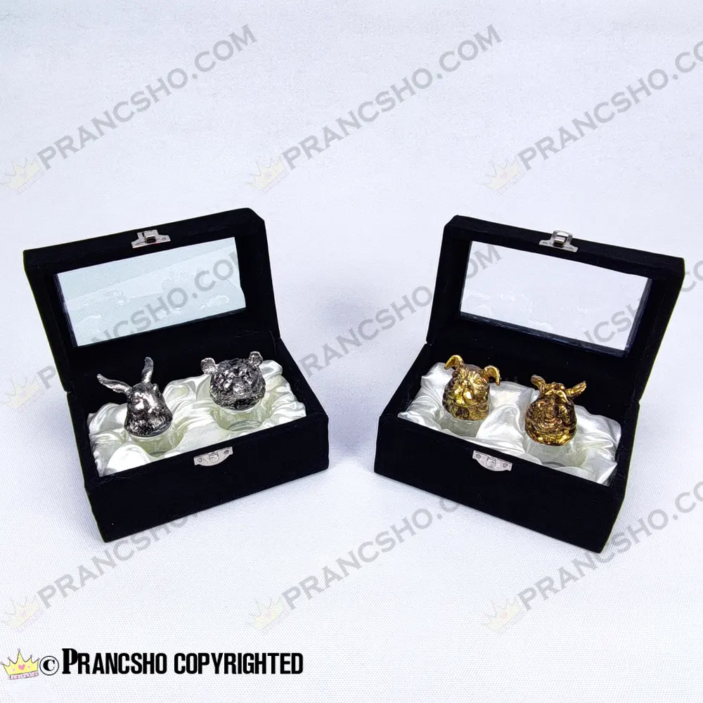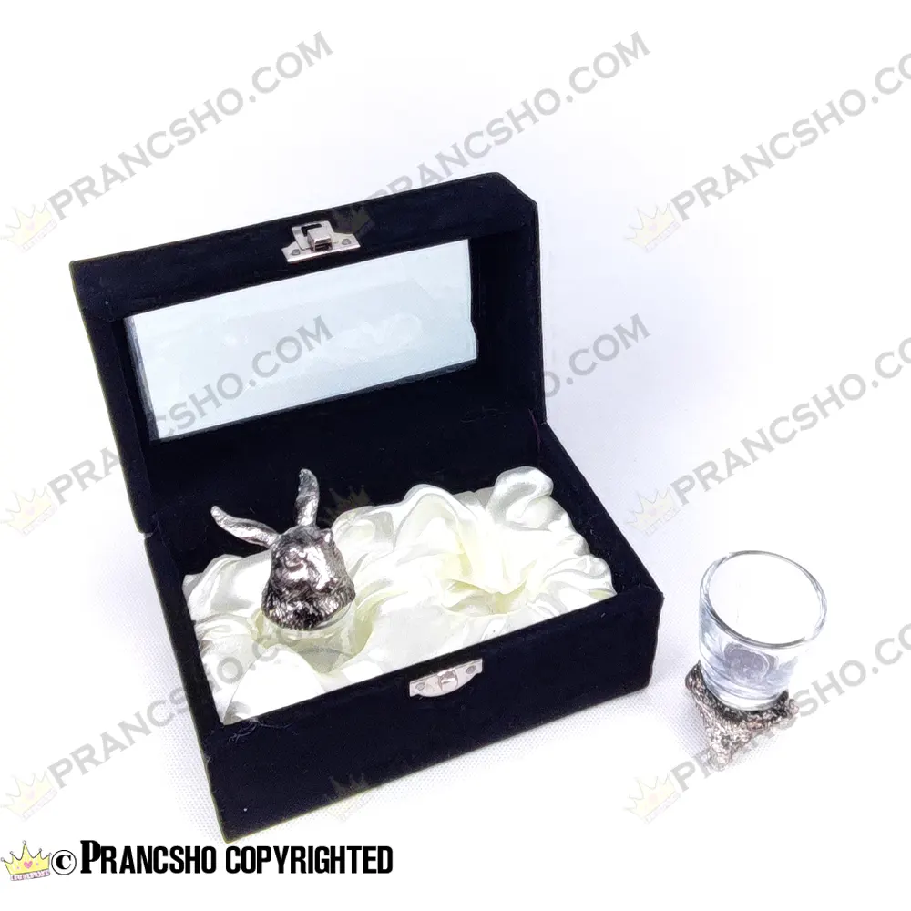 ست هدیه شات حیوانات نقره‌ای 2 عددی با جعبه کادویی مخمل مشکی