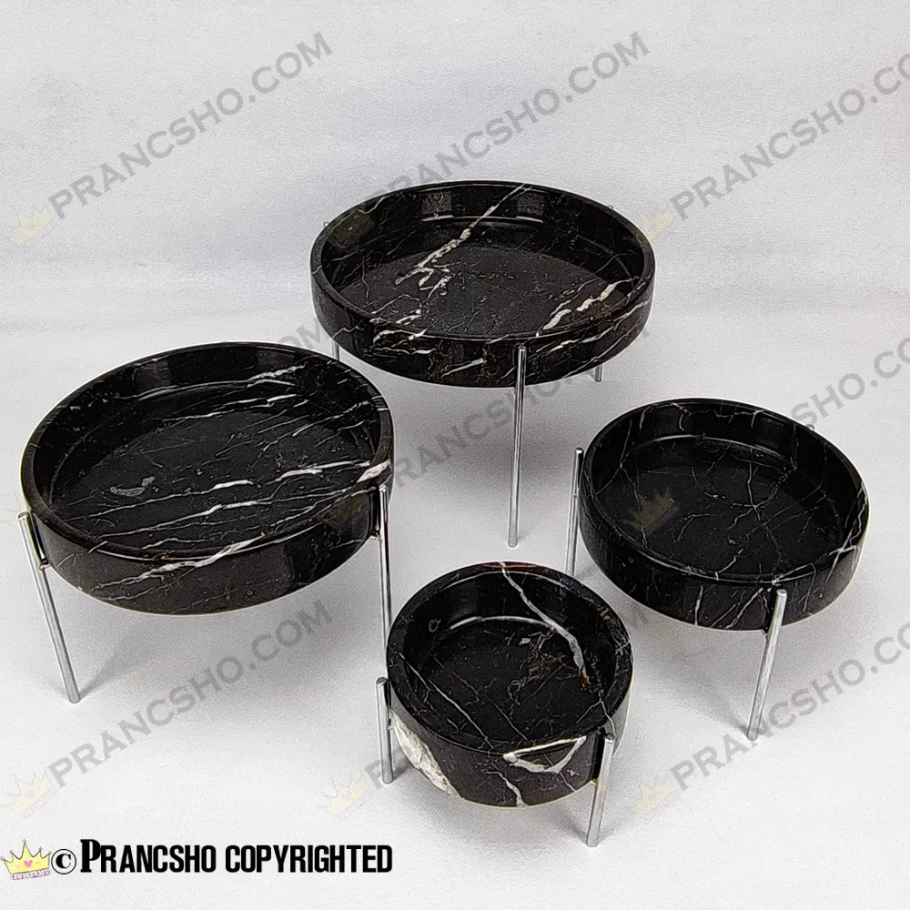آجیل خوری سنگی پایه میخی نقرهای سنگ مشکی خط سفید