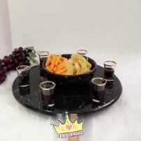 ست ظروف پذیرایی سنگی پایه میخی نقرهای سنگ مشکی خط سفید