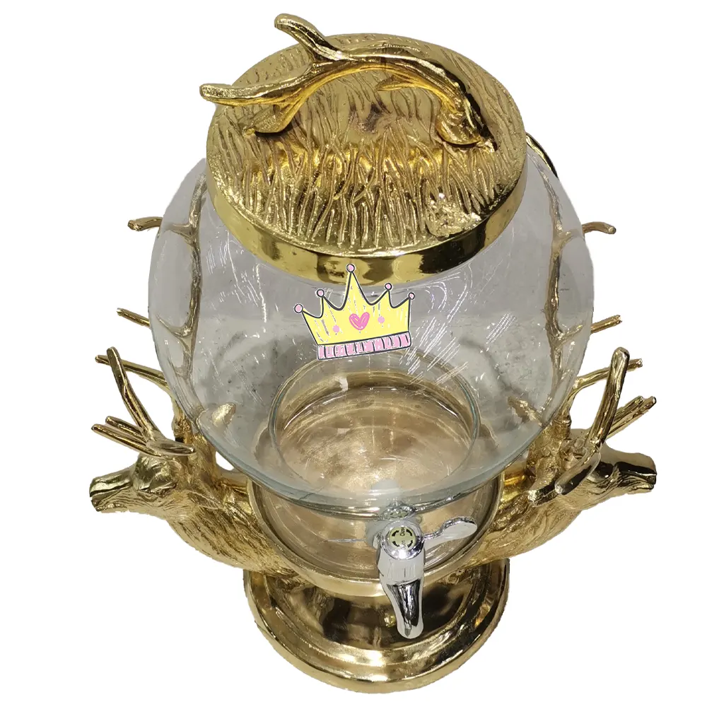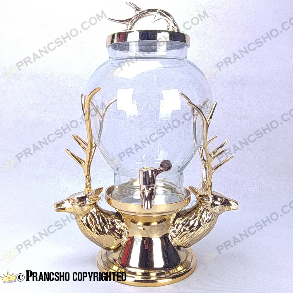 کلمن شیشهای با پایه دو گوزن آلومینیومی طلایی براق ضد اسید