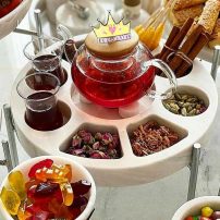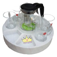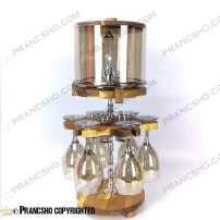 هر محصول شامل یک عدد استند چوبی با جا نگهداری 6 عدد گیلاس چرخان، یک عدد کلمن استوانه ای 4 لیتری، یک دست (6 عدد) گیلاس و یک عدد درب چوبی مخصوص کلمن می باشد