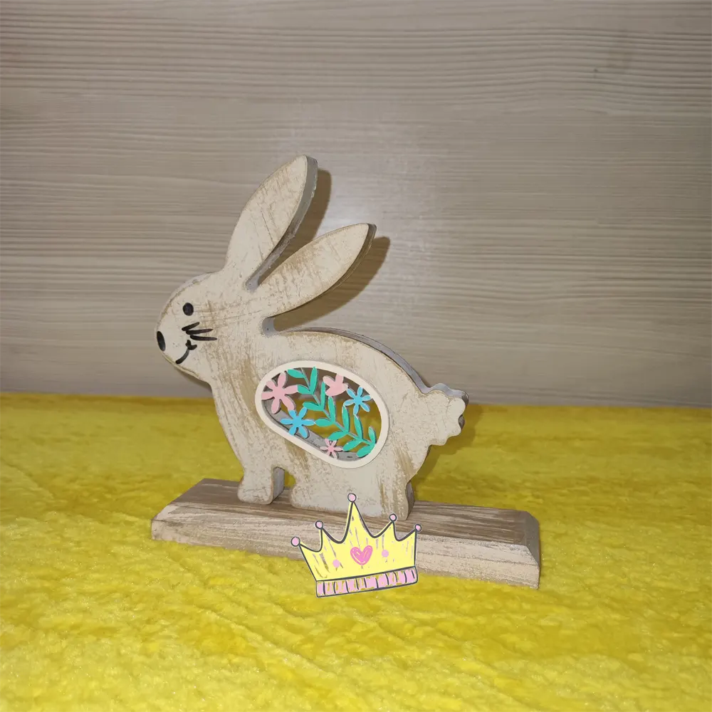 - استند خرگوش دکوری ایستاده چوبی به ارتفاع 23 سانتی متر و طول 20 سانتی متر