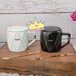 - محصول شامل ماگ سرامیکی طرح لوزی، درب ماگ منحنی سرامیکی و یک عدد قاشق فلزی می باشد.