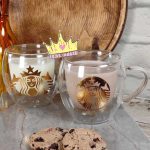 - لیوان دوجداره پیرکس طرح استارباکس طلایی در دو سایز 250 سی سی و 300 سی سی.