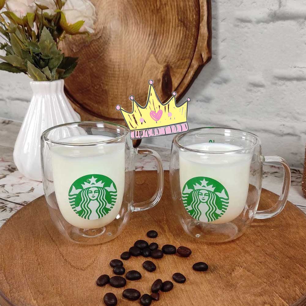 - لیوان دوجداره پیرکس طرح استارباکس سبز در دو سایز 250 سی سی و 300 سی سی.