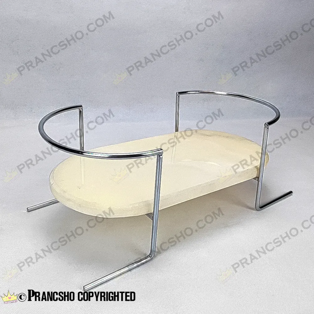 سینی بیضی سنگی دسته فلزی نقره‌ای با سنگ مرمر نباتی