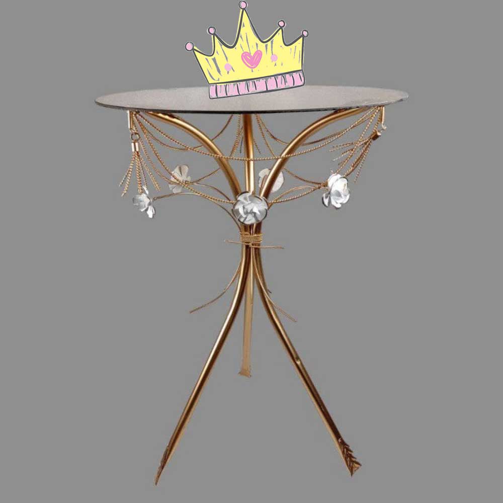 میز پایه فلزی طرح زنگوله صفحه شیشه ای گرد سه سایز
