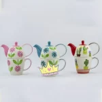 • ست های قوری و فنجان ایستاده در سه طرح بسیار زیبا رنگ آمیزی شده اند.