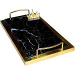 سینی پذیرایی مستطیلی سنگی دسته فلزی