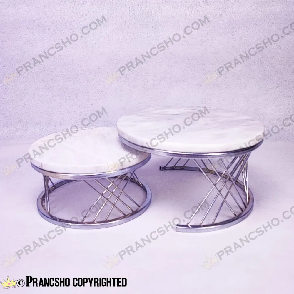استند پذیرایی دو طبقه سنگی پایه حصیری نقره‌ای سنگ سفید ازنا