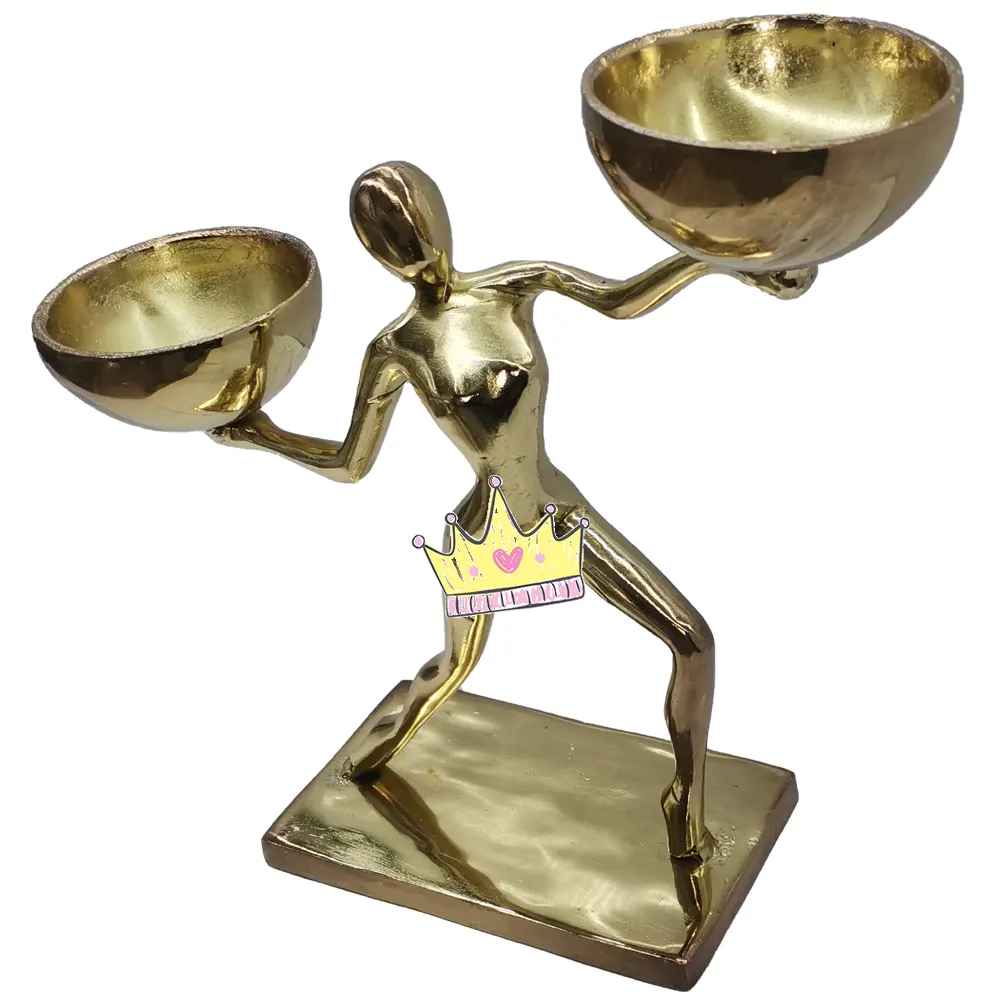 شمعدان دو شعله طرح آدمک طلایی