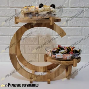محصول شامل یک عدد پایه چوبی گرد مخصوص قرار گیری شیرینی خوری شیشه ای، دو عدد شیرینی خوری گرد می باشد.