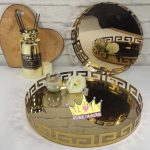 سینی گرد فلزی کف آینه ای طرح ورساچ