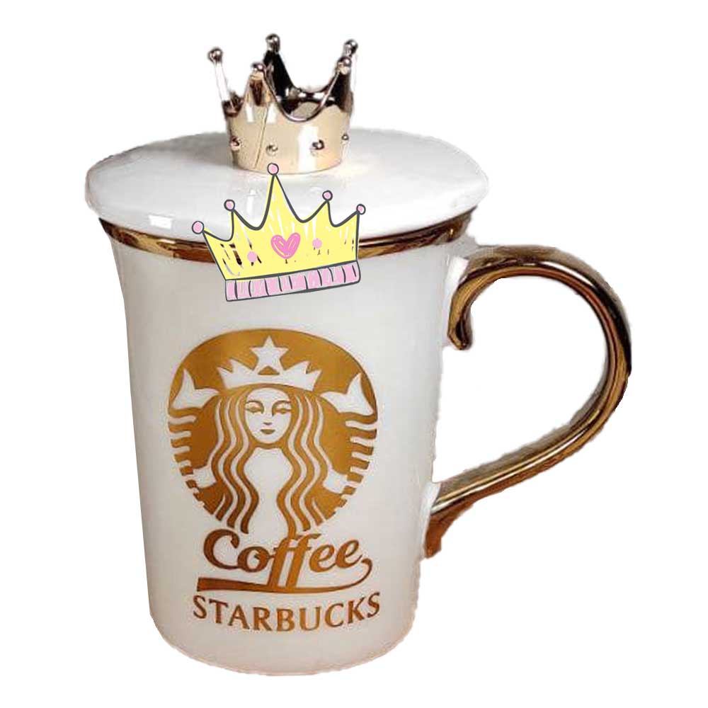ماگ سرامیکی سفید طرح استارباکس تاجدار